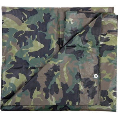 Plachta Woodland Plachta v provedení woodland. Na plachtě jsou ocelová oka pro upevnění - maximálně 1 metr od sebe. Plachta je vhodná jako nouzový přístřešek...