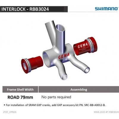 BB89 Interlock Střed: W: 89 mm x ID: 41 mm Kompatibilní: Shimano, SRAM GXP Keramická nebo nerezová ložiska CEMA SRC Hliníkové kryty proti prachu, Na Non-drive side je podložka 2,5mm INSTALACE STŘEDOVÉHO SLOŽENÍ INTERLOCK: