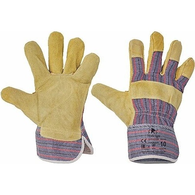 Rukavice z hovězí štípenky v dlani s podšívkou, hřbet a manžeta z bavlněné tkaniny. Splňuje normy:EN 420, EN 388 Ochranné rukavice proti mechanickým rizikům. Vel.: 10. Rukavice jsou baleny po 12 párech. Prodej pouze po celém balení (prodej pouze po 12 párech).