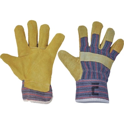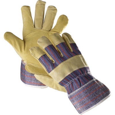 Rukavice z hovězí štípenky v dlani s podšívkou, hřbet a manžeta z bavlněné tkaniny. Splňuje normy: EN 388 Ochranné rukavice proti mechanickým rizikům, EN 420. Vel: 9, 10, 11....