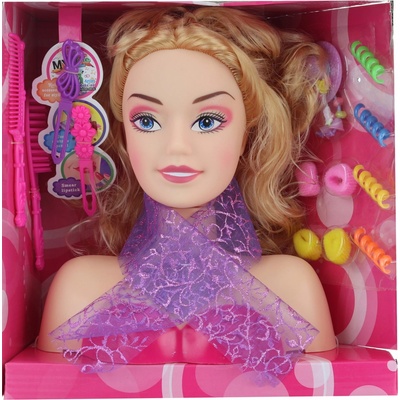 Česací hlava pro vytváření trendy účesů. S magickou funkcí, použij přiložený štěteček na rty namočený do studené vody a rty se krásně vybarví. Obsahuje 23 ks doplňků, které můžeš uschovat v tajné skrýši v podstavci hlavy. Vybaveno přísavkami na spodní části podstavce...