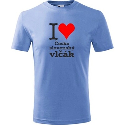 Světle modré dětské tričko I love Československý vlčák. nabízené velikosti jsou 4roky,6let,8let,10let,12let. Tričko patří do kategorií Dárek pro malého pejskaře / pejskařku, ....