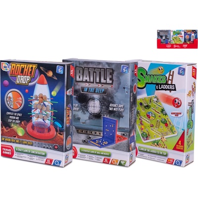 Více druhů cestovních her: Hadi a žebříky, Lodě, Rocket Drop. Rozměr: D: 14,5 cm x Š: 4 cm x V: 20 cm. Věk: 5+.