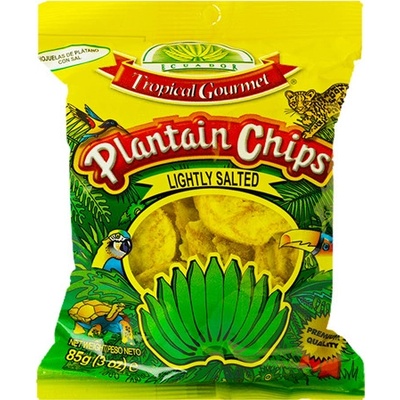 Křupavé, slané a přirozeně chutné – Tropical Gourmet solené chipsy z plantainů jsou lahodnou obměnou klasických snacků. Vyrobeny z plátků zelených plantainů smažených dozlatova...