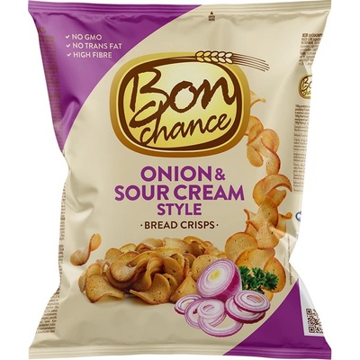 Luxusní Bon Chance křupavé chlebové chipsy připravené z pšenično - žitného chleba dochucené červenou cibulí a zakysanou smetanou. Lehké občerstvení nejen na doma. Vysoký obsah...