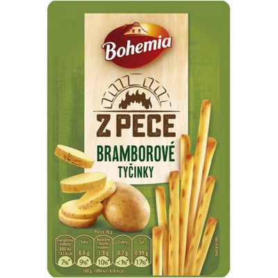 Bohemia tyčinky bramborové jsou vždy do křupava pečené, krásně tenké a ochucené tak, aby chutnaly co nejlépe Složení: bramborový škrob (30 %), pšeničná mouka, bramborový prášek...