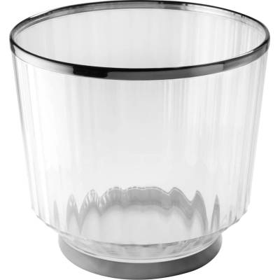 Chladicí kbelík na víno nebo šampaňské z "matného" plastu s průhledným okrajem. Lze jej mýt v myčce a stohovat.