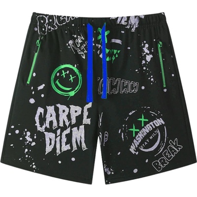Chlapecké šortky z měkkého plátna s potiskem palem. V pase guma a tkanička na stažení. Funkční kapsy 2 vpředu, jedna vzadu.