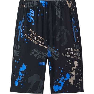 Modré plavecké šortky s celoplošným potiskem - volný střih, - ke kolenům, - elastický pas zajišťuje pohodlí při nošení, - elastický pas má tkaničky pro lepší padnutí, - vsazené...