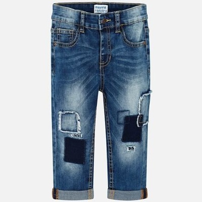 Dětské rifle se záplatami z elastické příjemné lehké džínoviny vhodné pro období od jara do podzimu. Módní dětské rifle s ohrnutými nohavicemi od španělského výrobce Mayoral....