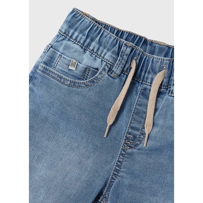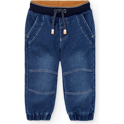 Pohodlné rifle s pružným pasem a s tkanicí na stažení. Funkční kapse na předním i zadním dílu. Ozdobně prošitá kolena s ukončení nohavic do gumy. Příjemný elastický materiál...