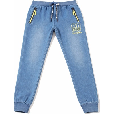 Chlapecké modré jogger džíny s kapsami a gumou v pase - volný střih, - široké nohavice zužující se ke dnu, - spodní část nohavic zakončena celoplošnou elastickou gumou s...