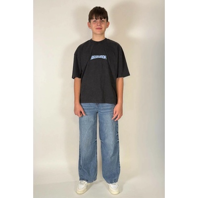 Chlapecké modré džíny WIDE LEG s efektem oděru, zapínané na zip volný střih WIDE LEG, široké nohavice, zapínání na zip, pas na knoflík, poutka umožňující nošení pásku, uvnitř...