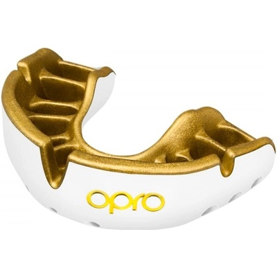 Chránič zubů - Senior • Barva: bílá - zlatá • Materiál: pěna, gel • Vhodné použití: kontaktní sporty, lední hokej