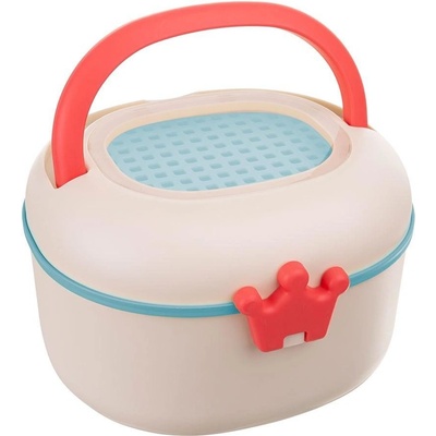 Ozdobná krabička na chrastítka / kousátka.Perfektní pro uložení chrastítek, kousátek a drobného příslušenství.Speciální praktický klip ve tvaru korunky zaručuje těsné uzavření.Výhody produktu:- slouží k uložení různých drobných hraček a doplňků,- má pohodlnou rukojeť...