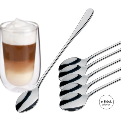 ROMA Stylová a elegantní lžička na Latté Macchiato z leštěného nerezu - sada 6 ks. Rozměry: délka 20 cm, výška 1,3 cm, šířka 3 cm