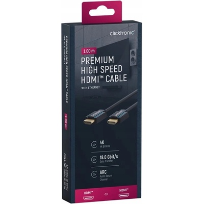 CLICKTRONIC kabel HDMI™ 2.0 4K Premium - UHD/4K/3D TVKrystalický obraz 4K a perfektní zvuk Kabel HDMI 2.0 4K značky Clicktronic byl navržen s ohledem na nadprůměrnou odolnost a stabilitu. Díky podpoře plného rozlišení UHD 4K @ 60 Hz jsou audio a video signály...