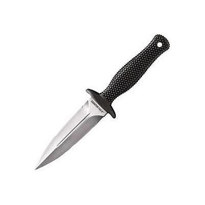 Malý nůž Cold Steel Counter TAC II, oboustranně broušená čepel tvaru dýky, protiskluzová gumová rukojeť, oboustranná záštita, plastové pouzdro s klipsem a řetízkem na krk.