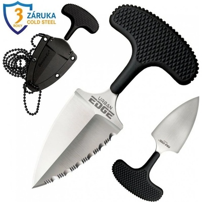 Urban Edge 50 / 50 Edge. od firmy COLD STEEL je tlačná dýka s oboustranným ostřím, které je z jedné strany hladké a z druhé zubaté. Je určený ke skrytému nošení nebo zavěšení na krk.