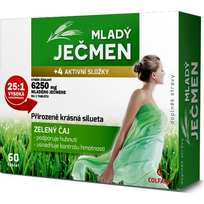 Přirozeně krásná silueta. COLFARM Mladý ječmen obsahuje kombinaci přírodních extraktů z mladého ječmene, zeleného čaje, hořkého pomeranče a řasy spiruliny doplněné chromem. Mladý ječmen dodává tělu řadu cenných látek. Je zdrojem důležitých vitaminů, minerálů,...
