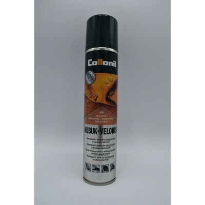 COLLONIL NUBUK + VELOURS 200ml Impregnační a ošetřující sprej na broušené usně a textil. Odstraňuje mastné a lesklé plochy na velurových usních (i na umělých velurech). Vhodný na TEXové materiály. Lze použít na obuv (i v kombinaci useň-textil), koženou galanterii,...