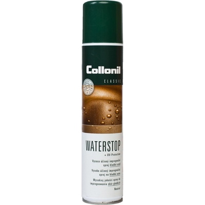 Waterstop Collonil spray 200ml Univerzální impregnace na všechny druhy usní a textil vhodná na TEXové materiály obsahuje UV filtr - chrání useň před vyblednutím vlivem slunečního záření zachovává useň prodyšnou použití na obuv, koženou galanterii, kož. oděvy, sedací...