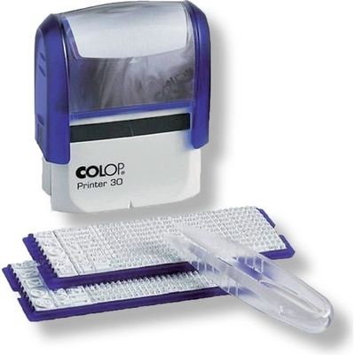 Samobarvící razítko COLOP Printer 30/1 SET, které si sestavíte sami. 5 řádků textu. Nejprodávanější firemní razítko. Vhodné pro delší texty včetně loga. Snadné nastavení...