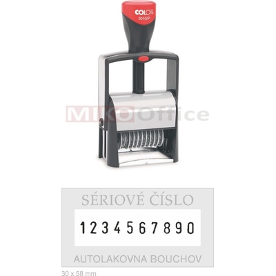 Kovové profesionální razítko s desíti číslicemi a textem Obdelníkové razítko s 5 řádky textu ideální pro kratké slovo (název společnosti) a až 10 číslicemi uprostřed....