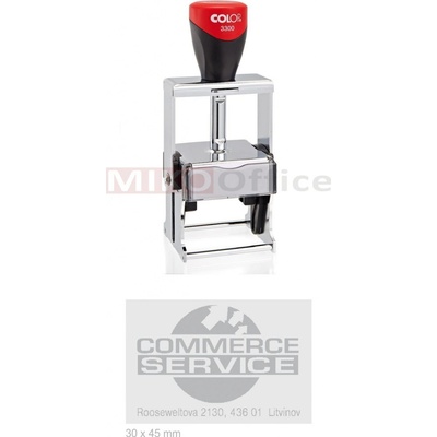 Colop printer 53 - výroba razítka obdélníkové razítko, textové samobarvící razítko Jak velký je otisk razítka? Otisk razítka má 30 mm na výšku a 45 mm na šířku