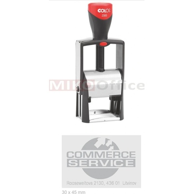 Kovové profesionální textové samobarvicí razítko. - Velikost otisku: až 45x30 mm. - Náhradní polštářek: E/2300. Součástí balení je černý polštářek. !!! Při objednávní...