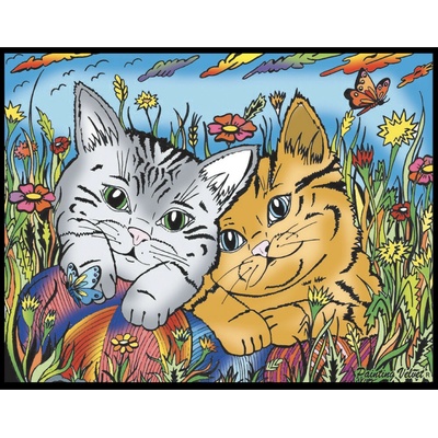 SAMETOVÝ OBRÁZEK KOŤÁTKA 21X29,7 CM. Sametový obrázek k vybarvení, motiv Koťátka. Vybarvovací šablona je ze sametu, který usnadňuje vybarvení. Obrázek můžete vybarvit fixami, pastelkami nebo voskovkami. Okraje motivu jsou přesně vymezeny sametem a zabraňují přetahování...