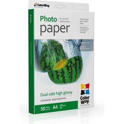 ColorWay fotopapír/ dual-side high glossy 220g/m2, A4/ 50 kusů ColorWay ColorWay Dual-side High Glossy A4 Určený pro oboustranný tisk. Tento papír má hladký, lesklý povrch, odolný vůči vodě. Fotografie vytištěné na tomto papíře mají bohaté a živé barvy. Lesklý papír...