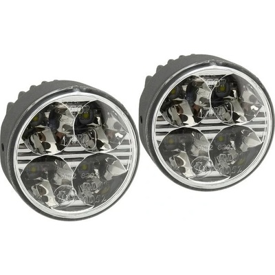 Homologovaná světla pro denní svícení, napájení 12/24 V. Každé světlo je osazeno 4x vysoce svítivou HI POWER LED diodou. Balení obsahuje 2x světlo s montážními držáky a kompletní kabeláž pro zapojení