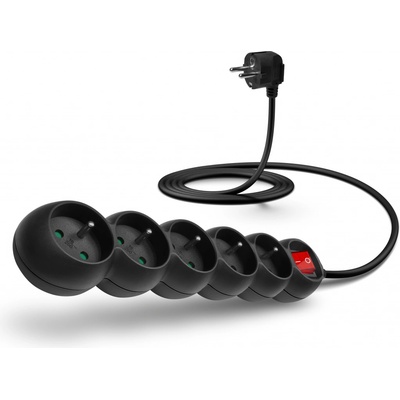 CONNECT IT prodlužovací kabel 230 V, 6 zásuvek, 2 m, s vypínačem (černý) CES-1003-BK --- Prodlužovací přívod na 230 V s vypínačem všech zásuvek a dětskou...