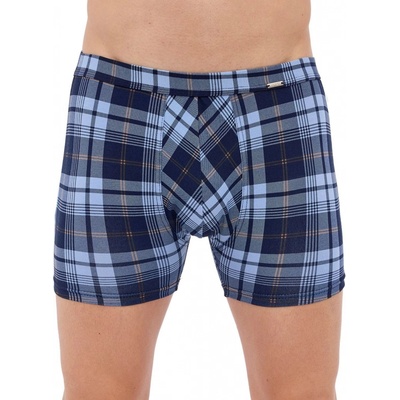 95 % bavlna, 5 % elastan Na fotografii je vidět klasický tmavě modrý károvaný vzor, který dodává boxerkám nadčasový charakter. Káro je v tlumených odstínech modré a béžové,...