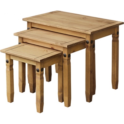 Praktická sada tří stolků CORONA Sada tří nerozkládacích stolků CORONA z masivní borovice s voskovaným medovým povrchem nabízí variabilní využití v obývacím pokoji, ložnici či...