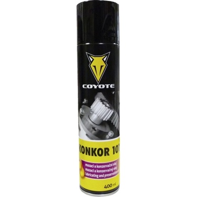 Coyote Konkor 101, 400 ml Vytváří na konzervovaných předmětech olejový film, který maže a současně dokonale chrání železné i neželezné kovy jako ocel, litina, měď, zinek a olovo.