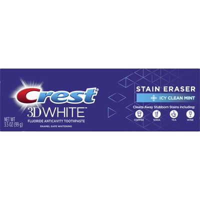 Bělicí zubní pasta Crest 3D White STAIN ERASER Icy Clean Mint odstraňuje zabarvení ze zubů od kávy, vína, čaje a jiných nápojů a jídel. Je to vynikající pomocník pro udržování...