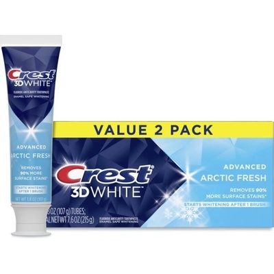 Cenově výhodné dvojbalení bělící zubní pasty Crest 3D White ADVANCED ARCTIC FRESH. Obsahuje: 2 x zubní pasta Crest 3D White ARCTIC FRESH Neobsahuje triclosan.