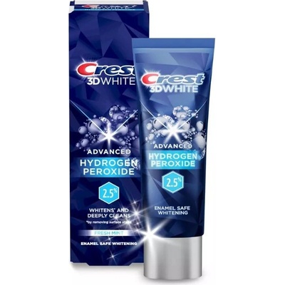 Bělící zubní pasta Crest 3D White ADVANCED 2,5% Hydrogen Peroxide s příchutí Fresh Mint je mimořádně účinnou bělící zubní pastou a to díky obsahu 2,5% hydrogenperoxidu. Pasta...
