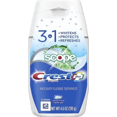 Tekutý zubní gel Complete Plus Scope 3 in 1 Teeth Whitening s bělící složkou představuje směs zubních past Crest a ústní vody Crest Scope. Spojuje účinek zubní pasty a ústní...