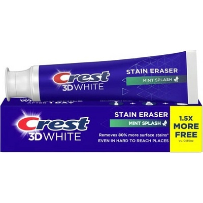 Bělicí zubní pasta Crest 3D White STAIN ERASER Mint Splash odstraňuje zabarvení ze zubů od kávy, vína, čaje a jiných nápojů a jídel. Je to vynikající pomocník pro udržování...