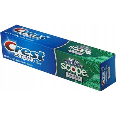 ZUBNÍ PASTA CREST COMPLETE PLUS SCOPE ADVANCED FRESHNESS - 232 G Je to perfektní ochrana vašich zubů a získání bílého úsměvu v jednom! Kombinované čisticí bělící složky byly...