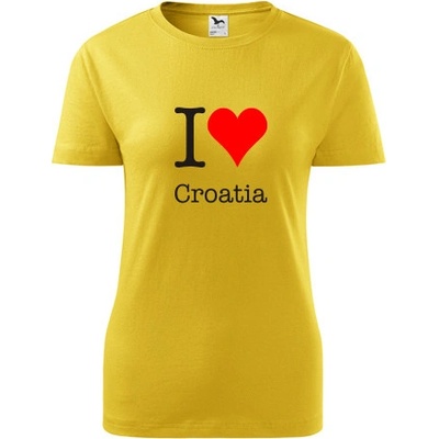 Žluté dámské tričko I love Croatia. nabízené velikosti jsou S,M,L,XL,XXL. Výběr z 12ti barev. Tričko patří do kategorií Trička I love - Chorvatsko dámská, . Technologie potisku:...
