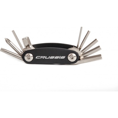 Nářadí ve skladném cestovním provedení pro rychlou opravu a úpravu komponentů na kole. Multiklíč Crussis má 9 funkcí.