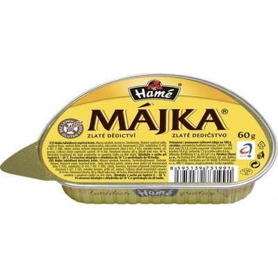 Májka paštika - lahůdkový vepřový krém 60g Hamé Obsahuje stopy: neuvedeno Alergeny: neuvedeno Země původu: Česká republika Výrobce: Hamé s.r.o.,Na Drahách 814,686 04...