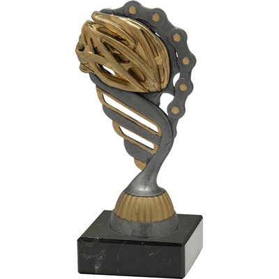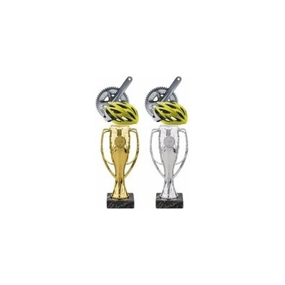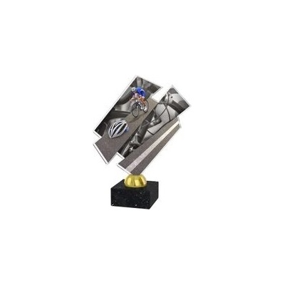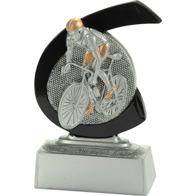 Sportovní pohár - soška s černým plastovým podstavcem. Výška sošek 15 cm. Materiál: podstavec: mramorový, soška sportu: plast. Tématika: CYKLISTIKA. Rozměr štítku: 47x16mm
