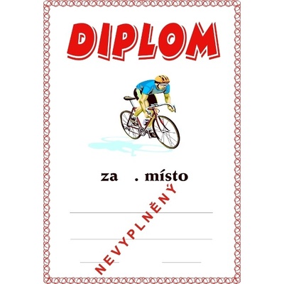 Diplom s motivem silniční cyklistiky Papírový diplom s motivem Formát A5, A4, A3 Diplomy jsou vytištěny plnobarevně na matném papíru 250g/m2, umožňujícím jak ruční dopisování...