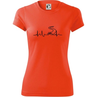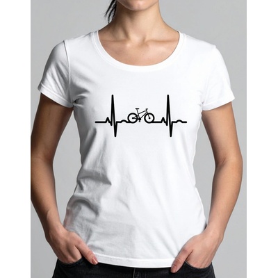 Dámské tričko – EKG cyklistika Stylové dámské tričko s motivem EKG křivky, která přechází v siluetu kola, je ideální pro všechny milovnice cyklistiky. Originální design...