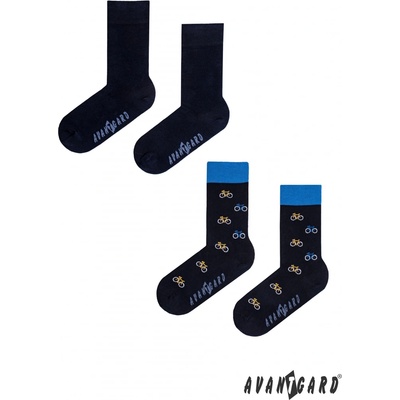 Sada kvalitních pánských ponožek se vzorem – Kolo obsahuje 1 pár jednobarevných modrých a 1 pár modrých ponožek se vzorem kola. Pánské ponožky jsou vyrobeny z příjemného...